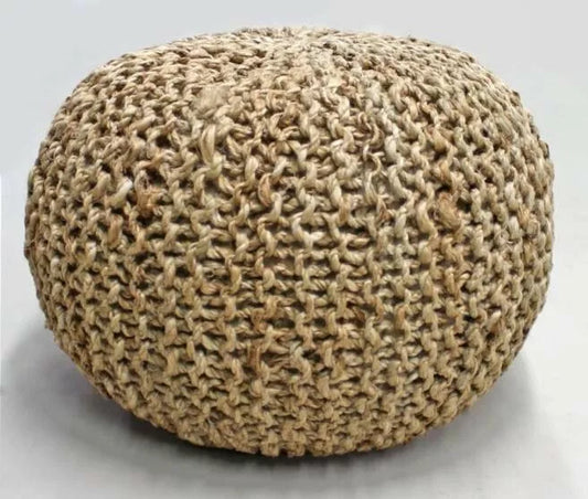 Hand-Knitted Jute Braided Ottoman Pouffe
