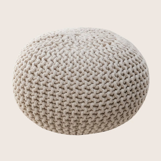 Hand-Knitted Beige Cotton Braided Ottoman Pouffe