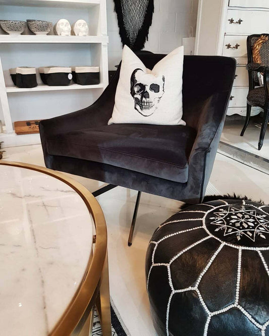 Stunning Moroccan Leather Ottoman (Poufe) BLACK