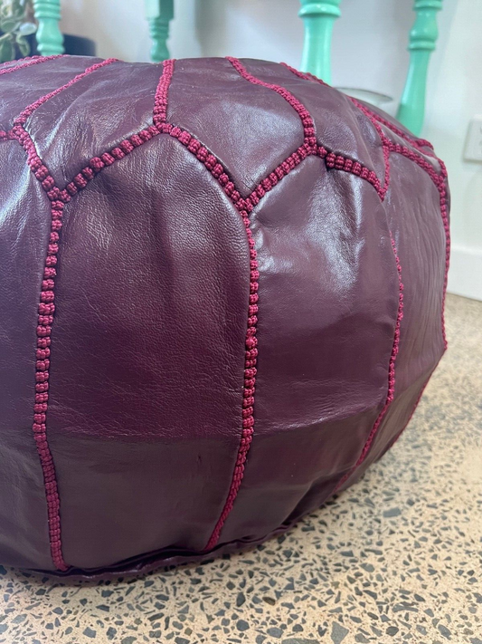 Stunning Moroccan Leather Ottoman (Poufe) BURGENDY