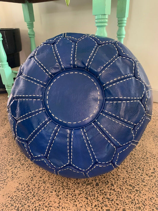 Stunning Moroccan Leather Ottoman (Poufe) BLUE