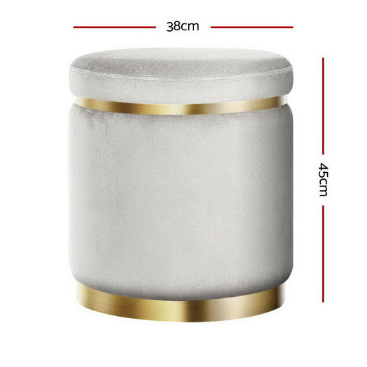Round Velvet Ottoman Foot Stool Foot Rest Pouffe Padded Seat Bedroom Footstool GREY VELVET
