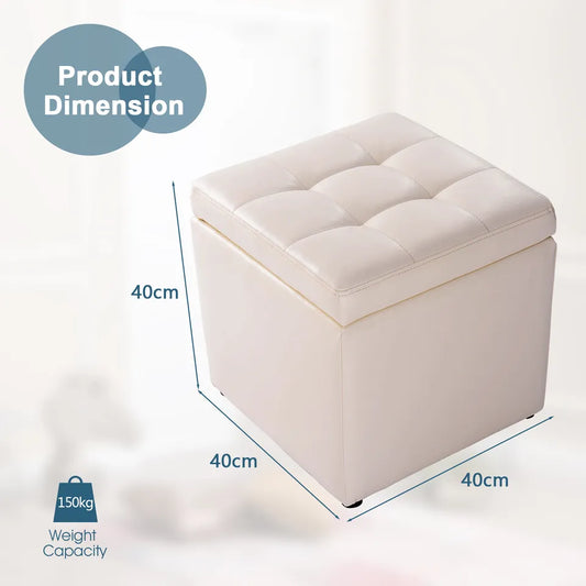 White Cube Storage Ottoman Pouf Storage Box Seat Footstool PU Leather 40cm