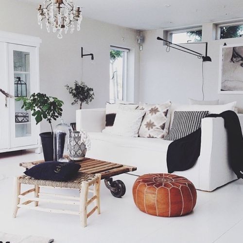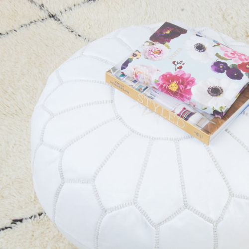 Stunning Moroccan Leather Ottoman (Poufe) WHITE