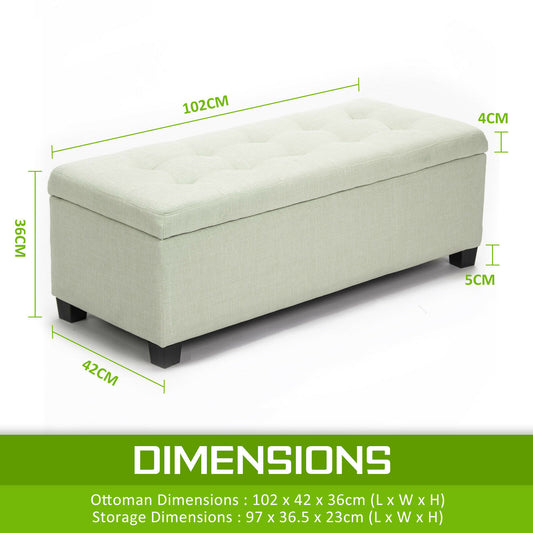 Bestselling Bella Ottoman Storage Box Australia- Misty Light Green Linen Fabric
